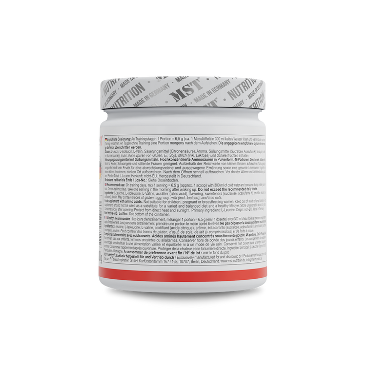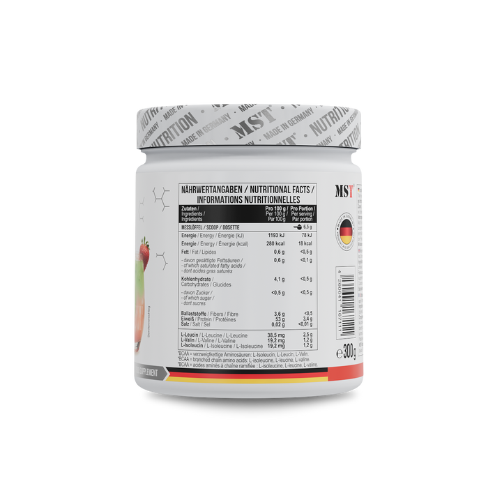 BCAA Zero von MST Nutrition liefert essentielle Aminosäuren im optimalen 2:1:1 Verhältnis aus L-Leucin, L-Isoleucin und L-Valin. Diese verzweigtkettigen Aminosäuren sind wichtige Bausteine von Proteinen, die zum Erhalt und Aufbau von Muskelmasse beitragen können – besonders bei intensiven...