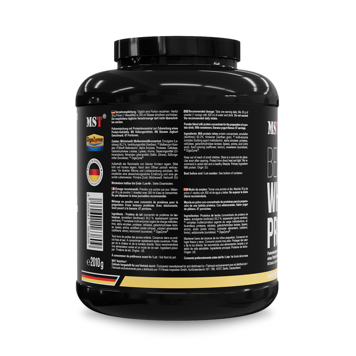 Відкрийте для себе неперевершений протеїновий досвід з MST® BEST Whey Protein Banana Yougurt 2010 г, доповненим DigeZyme® - освіжаючою комбінацією, яка забезпечує ваш організм високоякісним білком та травними ферментами.
